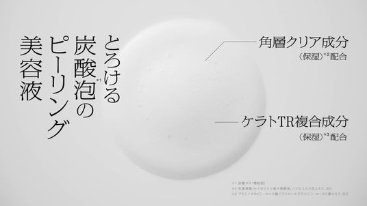 ふきとって、明るさ、つや感、うるおいまで感じる炭酸※1泡のピーリング美容液です。