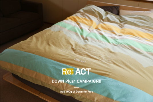 キャンペーン期間中に〈Re:ACT〉をお申し込みいただいた方に、通常有料オプションである羽毛追加100g(税込9,900円)を無料で提供。