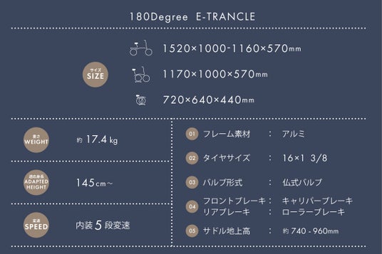 取扱いは電動アシスト自転車“180Degree E-TRANCLE”とノンアシストの“CARRI-CLE”の2種類。