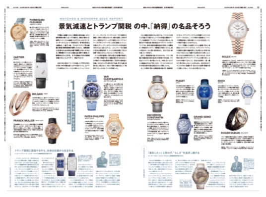 第二特集では、4月の初旬にスイス・ジュネーブで開催された高級時計市「ウオッチズ・アンド・ワンダーズ・ジュネーブ 2025」を訪れた時計ライターの渋谷ヤスヒトさんが、現地で見えてきたトレンド別に各ブランドの時計を紹介します。米国のドナルド・トランプ米大統領による相互関税に翻弄される時計市場の中で、存在感を放つのはどのブランドでしょうか?