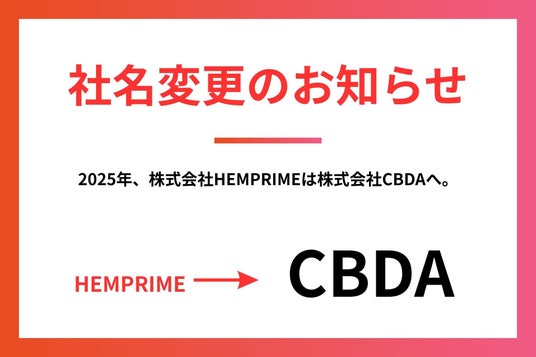 すべての人々の悩みに寄り添うCBD製品を提供する株式会社HEMPRIME(ヘンプライム)は、2024年12月に施行されるCBDに関連した法改定を受け、さらなる発展と新時代への対応を見据え、「株式会社CBDA(シービーディーアルファ)」へと社名を変更いたしました。