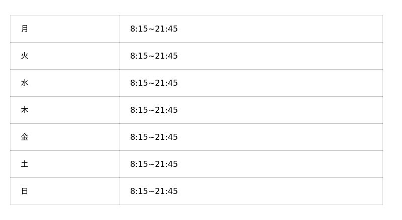 ※オープン時の営業時間となり、変更となっている可能性がございます。