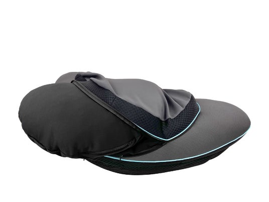 YOKONEGUシリーズ初となるブラック装いのまくらです!マチの部分等の要所にメッシュ地を使用する事とスカイブルーのパイピングで全体的に締まったイメージを持たせました。