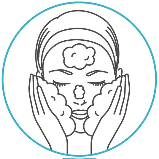 ●顔全体をやさしくマッサージするようになじませたあと、少量の水またはぬるま湯で泡立てながら顔全体を洗い、その後充分洗い流します。