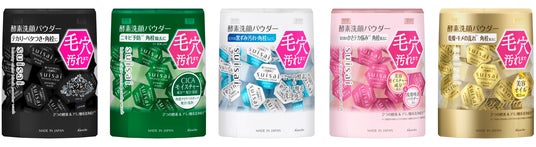 (左から):スイサイ ビューティクリア 「ブラック パウダーウォッシュ」「グリーン パウダーウォッシュ」「パウダーウォッシュN」「ピンク パウダーウォッシュ」「ゴールド パウダーウォッシュ」