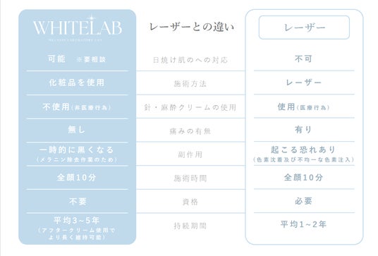 *表皮のシミに特化している施術です。真皮のシミ施術は医療行為のためホワイトラボでは施術不可。