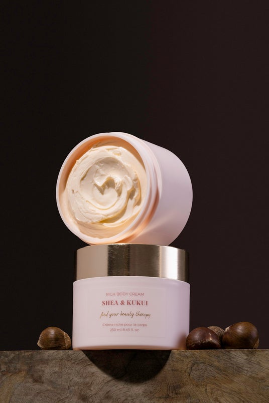 シアバター、カカオバター、ククイナッツオイル、マカダミアナッツオイル、4種の天然オイルを贅沢にブレンド。ビタミンA・Eと死海のミネラルが加わり、肌に溶け込むようになじむリッチな使用感。しっとりと上質な美肌へ導くボディクリームです。