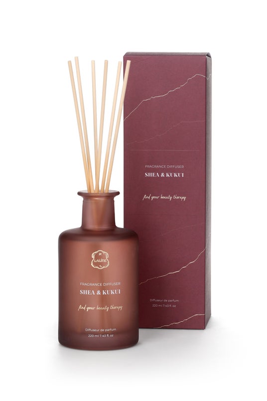 「シア&ククイ」の甘くやさしい香りが、お部屋全体にふんわり広がるフレグランスディフューザー。自然由来の成分をベースにした香調が、日常の空間をラグジュアリーな癒しの時間に変えてくれます。シンプルで上品なガラスボトルはインテリアとしても美しく、リビングやベッドルームの空間をラグジュアリーに演出します。
