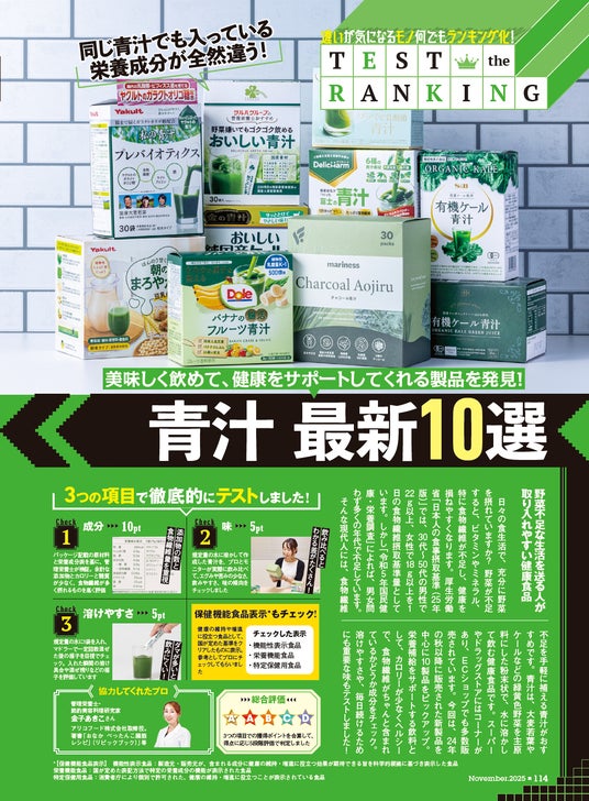 【青汁10選】美味しく飲んで健康サポート! ベストバイ製品なら青臭さも苦みもゼロで野菜不足をしっかりケア!!(MONOQLO2025年11月号)