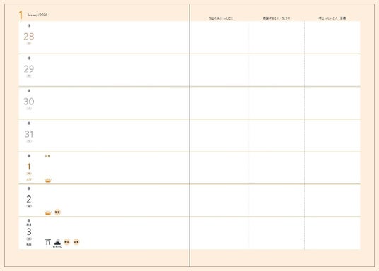 ウィークリーカレンダーは、日々の予定や日記(ジャーナリング)を綴りながら、常に開運日を意識できます。運気や占いの結果を知っても、すぐに忘れてしまったら非常にもったいないことですが、「木下レオン流 開運手帳」なら365日、その日のページを開くたびに意識できるので、自然に“氣”が動き、運の流れに乗ることができます。
