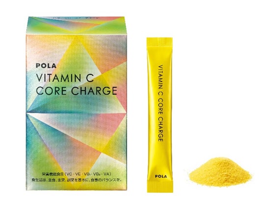 株式会社 ポーラ(本社:東京都品川区、代表取締役社長:小林琢磨)は、ポーラ独自の「ビタミンC+Pmix」処方を採用したビタミンCを中心に、12種類のビタミンやセラミド、亜鉛などをバランスよく配合した栄養機能食品『ビタミンC コア チャージ』(2.3g×30包 ¥5,832<税抜¥5,400>、2.3g×90包¥15,120<税抜¥14,000>、栄養機能食品:VC・VE・VB1・VB2・VA、特許取得健康食品 ※配合成分に関する特許<特許第7629287号>)を2026年1月1日に発売します。