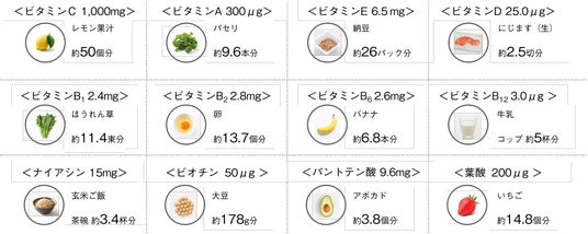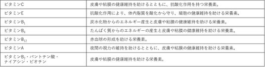 ビタミンCを中心に、12種類のビタミンや、「セラミド」「亜鉛」も配合しています。
