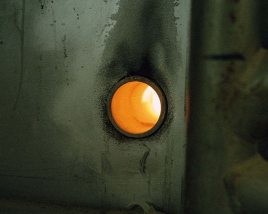 ガスで焼き上げ、仕上げを経て完成