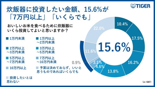 おいしいお米を食べるために炊飯器に投資したい金額は、15.6%が「7万円以上」「いくらでも」と回答し前回調査の12.1%を上回る