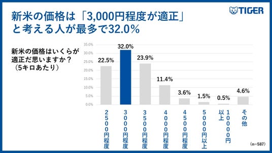 【タイガー魔法瓶「お米と炊飯器に関する意識調査 vol.2」】約8割が「新米の価格が高い」と回答。消費者の新米適正価格は3,000円程度!また、炊飯器への投資意向は「高級化」が進む