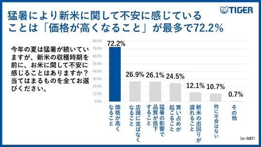 今年の夏の猛暑による新米への不安は「価格が高くなること」が圧倒的1位