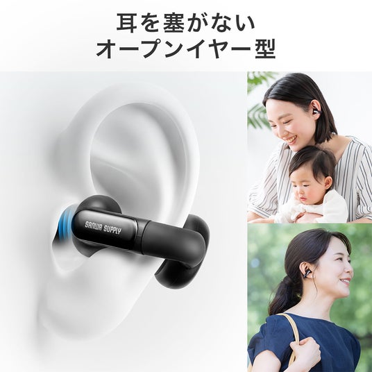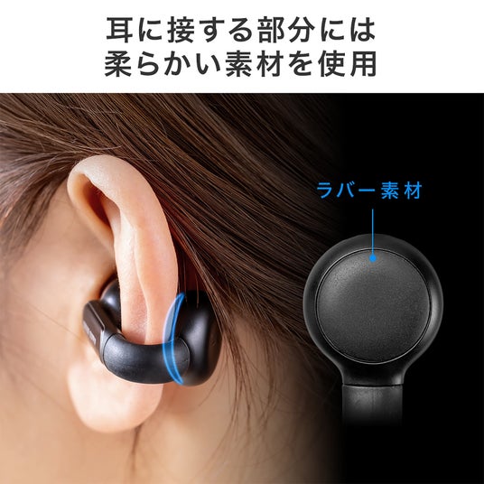 サンワサプライ株式会社耳の穴を塞がないオープンイヤー型で耳の外側に挟み込むようにして固定するイヤーカフ形状のBluetoothイヤホン