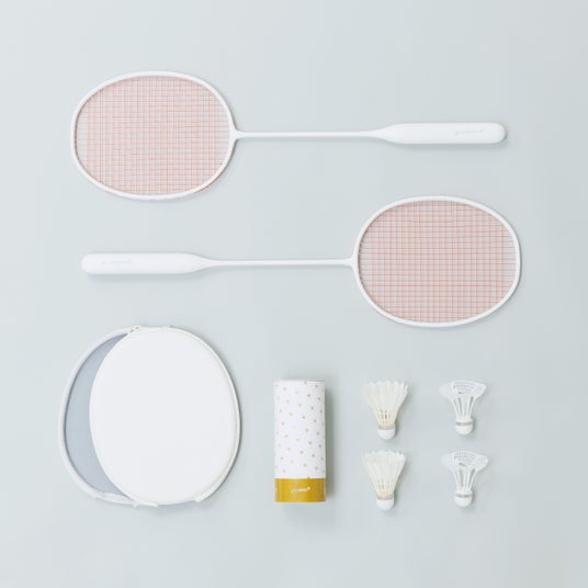 すぐに始められるオールインワンセットラケット2本、シャトル2種(ナイロンシャトル・羽シャトル)、専用シャトルケース、そして持ち運びに便利な収納ケースを統一された世界観でセットにしました。