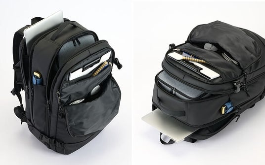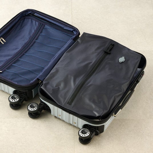 出張時の前泊・後泊をカジュアルに過ごしたい、旅行時の目的地に合わせて靴を履き替えたい、仕事帰りにジムへ立ち寄りたいなど、もう1足の靴を持ち運びたいシーンに最適な大容量バックパックと、キャリーケースの収納力を高める圧縮袋の登場です。たっぷり容量約35Lのバックパックは、底面に靴用の独立ポケットを備え、2足目を気兼ねなく収納可能。さらに16インチクラスのノートパソコンを収められる専用気室を備えるほか、多彩なポケットを搭載しており、荷物をすっきり整理できます。圧縮袋は、手で押さえるだけでかさばる衣類が小さくまとまり、キャリーケース内のスペースが広がります。しっかり密閉できる頑丈なファスナーにより空気漏れを防ぎます。サイズはM(容量約19L)とS(容量約15L)の2種類をご用意しました。