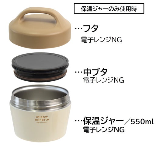 - おかず容器を取り外して保温ジャーの部分だけでも使えます。容量は保温ジャーのみ使用時は550ml。オムライスや、サラダランチ、冷たい麺ランチなど1つのお弁当箱でメニューの幅が広がってマンネリ解消に。