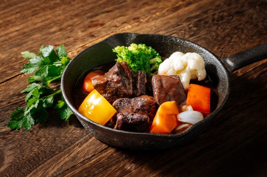 牧草牛のバラ肉を丸1日赤ワインと香味野菜で漬け込み、4時間かけて柔らかく煮込みました。