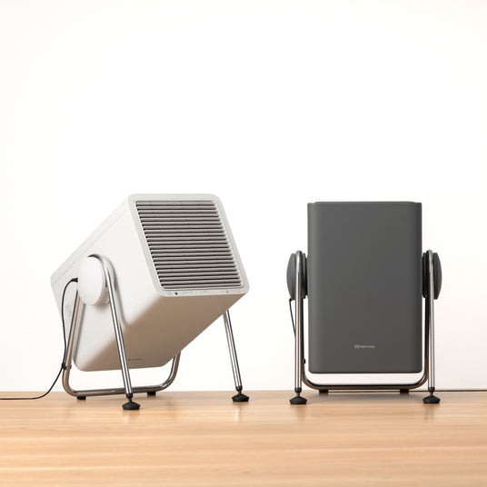 空気清浄機としては、これまで見たことのないビジュアル。脚のついたエアサーキュレーターのようです。実際、豊かな風が吹き出されますが、その空気の質は極めてクリーン。