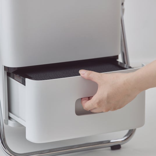 2重反転ファン採用のパワフルなターボモードをお出かけ前にセットしておけば、空気も臭いもきれいにできるため、安心して友人を招くことができます。自由に角度を変えられるので、部屋干ししている洗濯物をねらって風を送ることも。雨続きの部屋干しの日にも臭いがこもらず助かりました。花粉の時期には、玄関先で吸い込み口を自分の方に向ければ、花粉の侵入を防げます。埃が溜まりがちなフィルターは、床から浮いているため本体の下部にゴミが溜まりにくく、ホコリや花粉などを集める集じんフィルターは引き出し式で汚れても簡単に取り外して掃除機で掃除、プレフィルターとフィルターケースは水洗いできるので、清潔に保つことができて安心です。