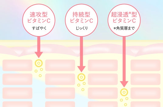 角層に段階的にアプローチ。ビタミンの手応えを損なうことなく肌に届ける「時間差放出処方」