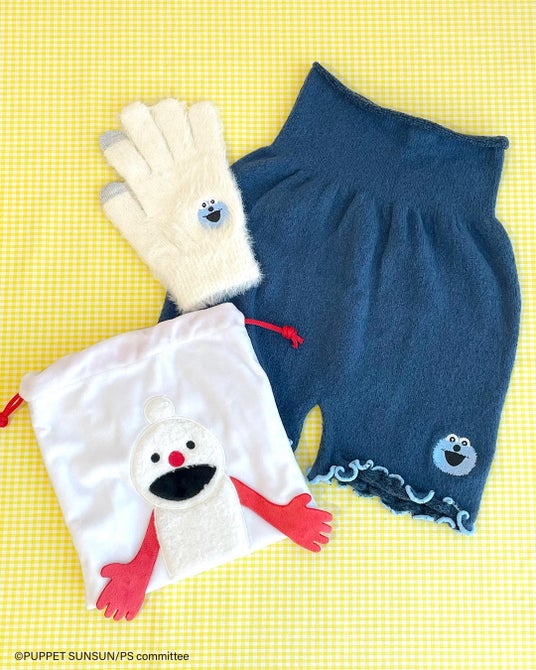 手袋、ウエストウォーマーは機能性はもちろん、「スンスン」のワンポイント刺繍もポイントです。
