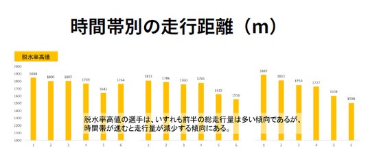 ・脱水率が高い選手は、試合後半に走行距離が明確に減少する傾向がみられた。