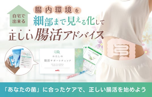 「腸サポ(わたしの腸活サポートチェック)」は、青森県の弘前大学が2005年より毎年実施している、弘前市(岩木地区)で約1,000名を対象とした岩木健康増進プロジェクト健診の“ビッグデータ”に基づき腸内フローラのパイオニアである株式会社テクノスルガ・ラボが解析を行っており、独自の基準株データベースを用い根拠に基づいて細菌の割合を算出しております。「腸サポ」では、日本人の同世代同年代の平均値と比べた腸内総合評価や有用菌量、腸年齢、自分の腸内フローラ型が分かる他、健康度と腸内フローラとの関連として「免疫・感染防御」「こころの健康状態」「肥満・ダイエット」「美容」「お通じ」「長寿」の6項目の評価が「良い・普通・悪い」の3段階で分かるため、ご自身の腸内フローラを詳細に把握することができます。2025年6月にリリースした「わたしの腸美人サポートチェック(専門家による食生活アドバイス付き)」では腸活専門家考案の“食生活アンケート”にご回答いただくことで、ご利用者様一人一人の食生活を腸活専門家が詳細に解析し、腸内フローラ検査の結果と照らし合わせた最適なアドバイスをご提供いたします。