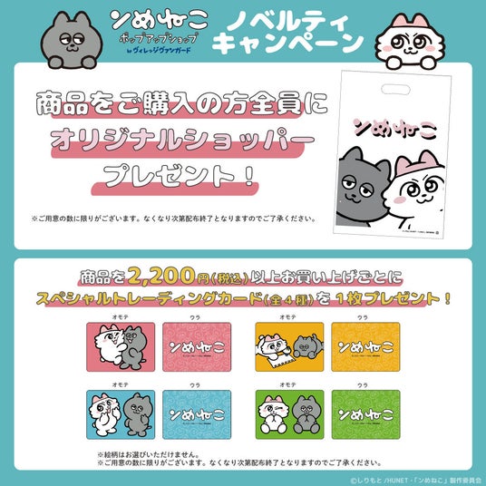 POP UP SHOP『ンめねこ ポップアップショップ byヴィレッジヴァンガード』でしか手に入らないファン必携の限定アイテムとなっています。