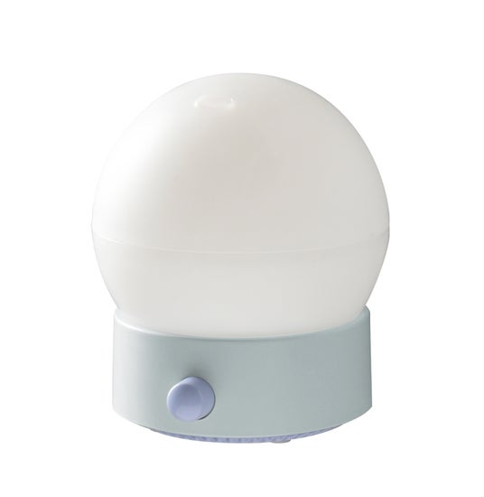 月を思わせる丸いフォルムで、ライトとしても活躍。インテリアのアクセントになるブルーグレーとクリームオレンジの2色展開。