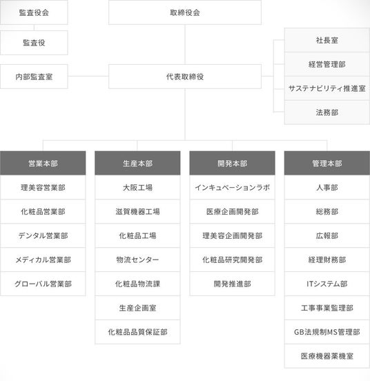 ※現行5事業部(理美容事業部/化粧品事業部/デンタル事業部/メディカル事業部/グローバル事業部)は営業本部として再編。