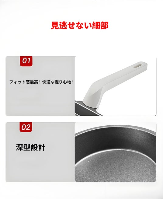 1.チタンセラミック素材を採用し、フライパンの焦げ付き防止性能を大幅に向上させました。