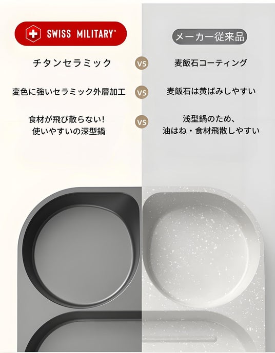 発売開始!SWISS MILITARY|3in1仕切り付きフライパン!多種料理を同時に