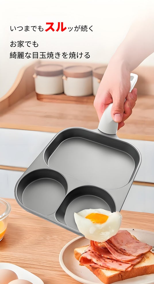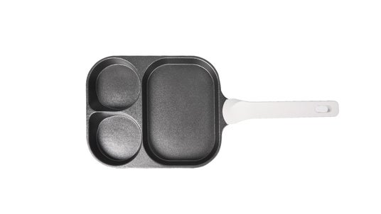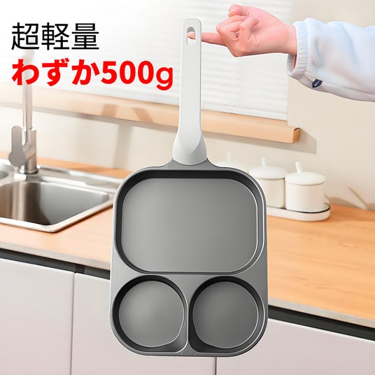 この仕切り付きフライパンは、2つの円形ゾーン+1つの長方形ゾーンで設計されており、卵・パンケーキ・ハンバーグ・ステーキなど、3品を一度に調理可能!忙しい朝でも、わずか数分で栄養バランスの取れた朝食が完成します。