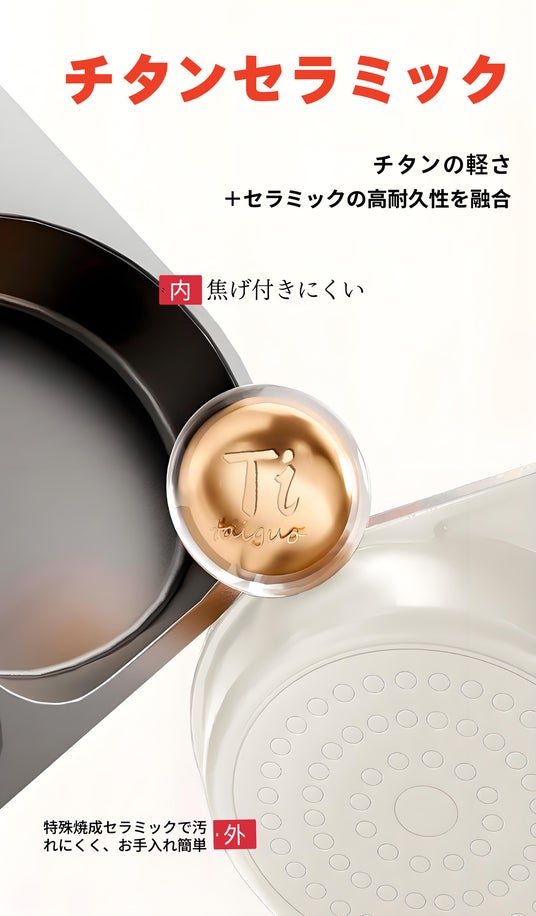 フッ素系化合物を使用しないチタンセラミック素材で構成され、長期間使用してもフッ素による懸念を抱く必要がありません。毎日の調理シーンで気兼ねなく使える選択肢となっています。