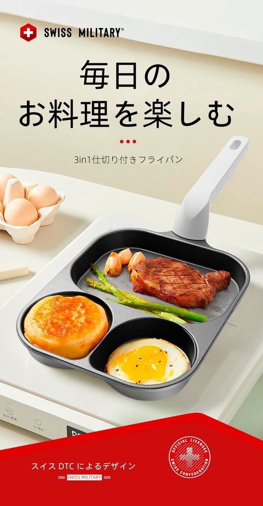 株式会社SUNONESWISS MILITARY仕切り付きフライパンはMakuakeて発売開始https://www.makuake.com/project/swiss_military_3in1_frying_pan/