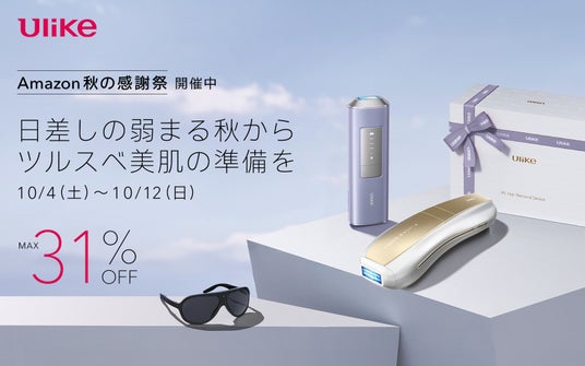 家庭用美容機器メーカー「ユーライクジャパン株式会社」(本社:東京都港区)が展開する家庭用光美容器世界No.1(*1)ブランド「Ulike(ユーライク)」は、Amazonで10月7日(火)~10月10日(金)に開催される「Amazon プライム感謝祭」に先駆けて、10月4日(月)より先行セールを実施いたします。