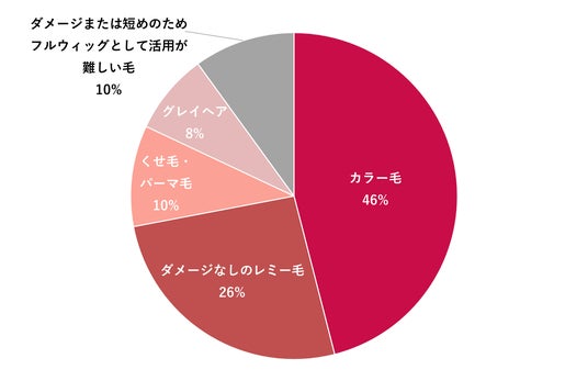 人それぞれに自毛の個性があるように、ウィッグを必要とする方々がより自分に合うと感じるウィッグの髪質やスタイルも様々だからこそ、長さの基準を満たしていれば、どんな髪でも受け付け可能としている「finoウィッグBank」には、カラーを楽しんだものや癖のある髪、グレイヘアなど実に多様な髪が寄せられています。このように多様な髪が寄せられる中には、毛束全体では31cm以上あるものの、部分的に短い髪が混ざっていたり、ハイダメージのために途中で切れてしまったりなどフルウィッグの製作には活用することが難しいものが全体の約1割を占めています。たとえ1割であっても、それらの髪1本1本にドネーションした方々の想いがつまっているからこそ、本プログラムではその大切な想いを受け止め、必要とする方々のもとへつないでいければ願い、新たな応援のカタチとして、