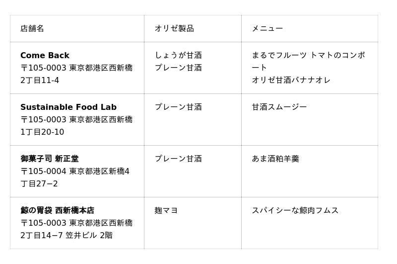 虎ノ門のまちぐるみの食のプロジェクト「TORANOMON JUST RIGHT NEW FOOD」にて、オリゼの甘酒・麹マヨを活用した4種の特別メニューを発表