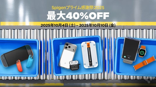 モバイルアクセサリーブランド「Spigen(シュピゲン)」は、Amazonプライム会員限定の大型セールイベント「プライム感謝祭 2025」に参加し、人気のスマートフォンケースや保護フィルム、ウォッチアクセサリーなどを最大40%OFFで販売いたします。