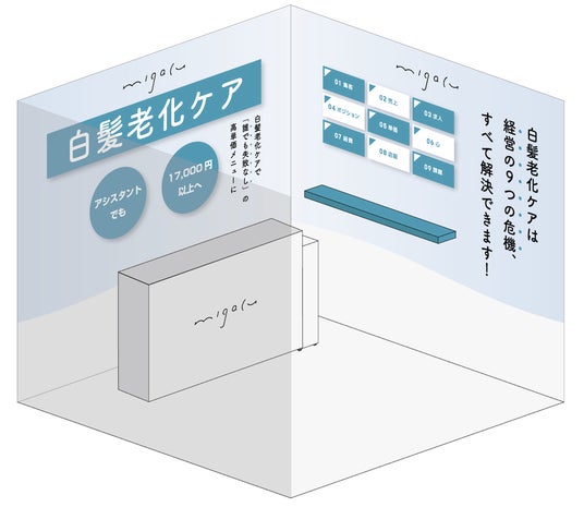 mm.(ムム)は、美容師にしかできない代理店事業を立ち上げ、新たなキャッシュポイントの創出というサロンの経営課題を解決するブランドです。従来の美容専売メーカーとは捉え方を変えた新しいアプローチが最も重要な特徴です。