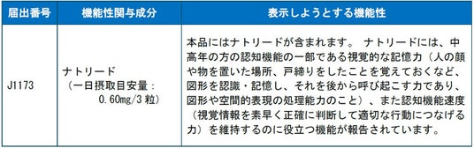 また、老化促進モデルマウスを用いた研究では、「ナトリード」の経口投与により認知機能の一つである空間記憶の回復効果が認められること、さらにアルツハイマー型認知症患者に対する臨床試験で髄液中のアセチルコリン濃度を増加させる作用を確認しており、「ナトリード」が認知機能に対する新しい機能改善物質の候補であることを示唆していました。