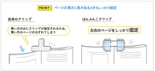 厚みに差があっても左右のページをしっかり固定