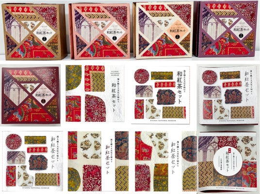 その更紗と、“世界に広まり海を越えて日本に伝わった”という来歴が同じである紅茶を組み合わせたのが「海を超える文化を味わう 和紅茶セット」です。個包装の袋には、無数にある九州国立博物館の更紗コレクションの中から美しさ、鮮やかさ、多彩さが伝わるよう、学芸員と商品企画担当者で選定を重ね、生産地と時代、柄、色味などのバランスを考慮して7種をピックアップ。解説パンフレット付きで、更紗への知識を深めることもできます。外箱は柄が生きるように10種類以上のデザインを考え、きれいに印刷できる印刷所を探し、色の再現にこだわりました。