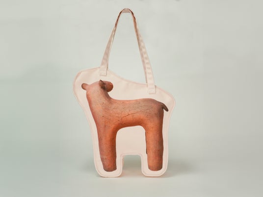 九州国立博物館のコレクションでも屈指の人気を誇る《埴輪鹿》を、持ち歩きやすいよう、実物の約3/4スケールでバッグに落とし込みました。とぼけた表情が魅力的な正面だけでなく、展示では見えにくい背面まで律儀にプリント、360度隙がありません。ぬいぐるみより便利で、バッグよりかわいい埴輪鹿トートと一緒なら、ミュージアムめぐりもいっそう楽しくなるはずです。貴重品をしまう便利な内ポケットつき。