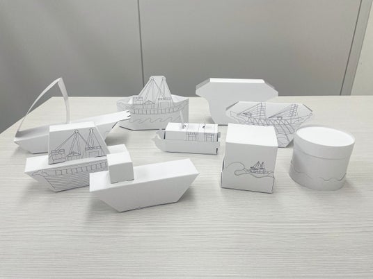 箱の形状にもこだわり、様々な船型や波型を表現した箱を作成して検討