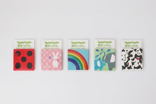いつでも、どこでも携帯できるコンパクトな紙せっけんは、お子様の手におさまるサイズですので、ハンカチと一緒に、ぜひ持ち歩いてください。どのパッケージでデザインが当たるかは、お楽しみに♪
